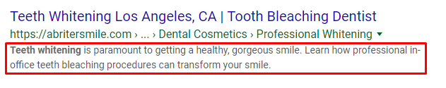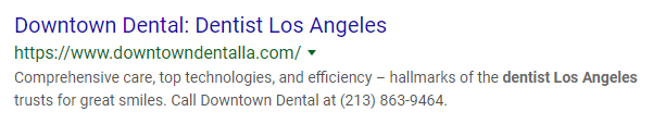 For example, when we search for "Dentist in Los Angeles" you can see that our keywords are bolded.